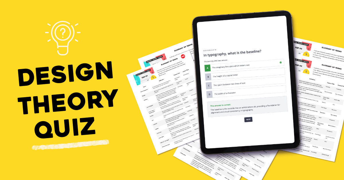 Take our Design Theory quiz and get instant access over 100 design terms! ( you will need to create a free account to access the quiz and PDF Guide!